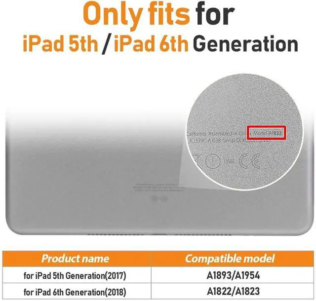 Compatibility: Specially designed for iPad 9.7 inch 6th Generation 2018 and 5th Generation 2017. Fit model: A1822, A1823, A1893, A1954. NOT compatible with other tablet models. Please check the model before purchase