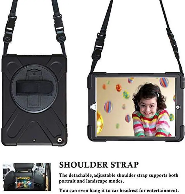 Adjustable Shoulder Strap & Hand Strap: The armor heavy duty rugged hard nonslip protective construction tablet case for iPad 9.7 inch comes with a detachable and attachable shoulder strap, so that you can carry tablet on neck or shoulder like a bag, can also sling it on car head rest. The handle hand grip is also adjustable, which allows you to securely grip your iPad with one hand