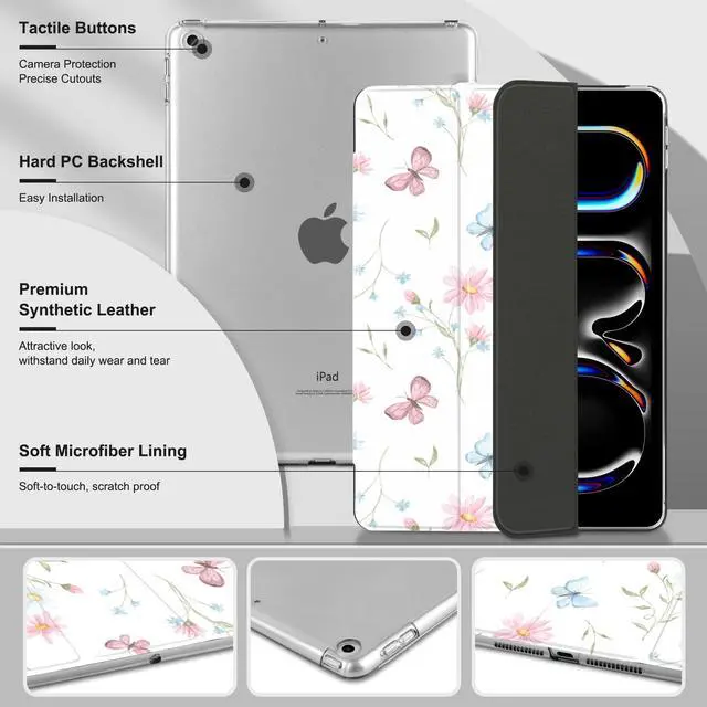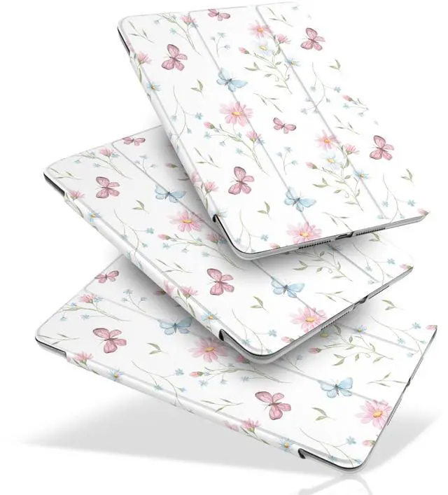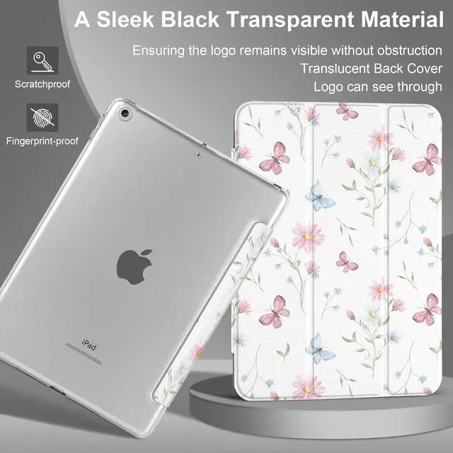 MecBevia Case for iPad 10.2 Inch 9th Generation 2021 / 8th Gen 2020 / 7th Gen 2019, Slim iPad 10.2 Case Cover with Hard PC Back, Auto Wake/Sleep, Butterfly Flower