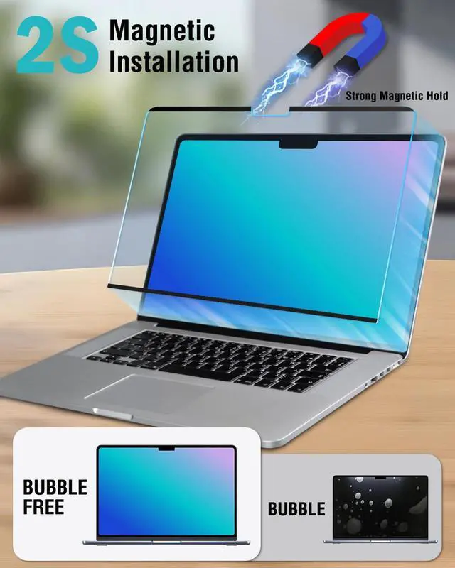 Bubble-Free in Seconds Snap & Go! This macbook air screen protector 13 inch uses advanced magnetic alignment, ensuring flawless installation faster than brewing coffee. Removes cleanlyno sticky gunk like cheap adhesive protectors