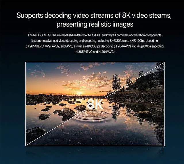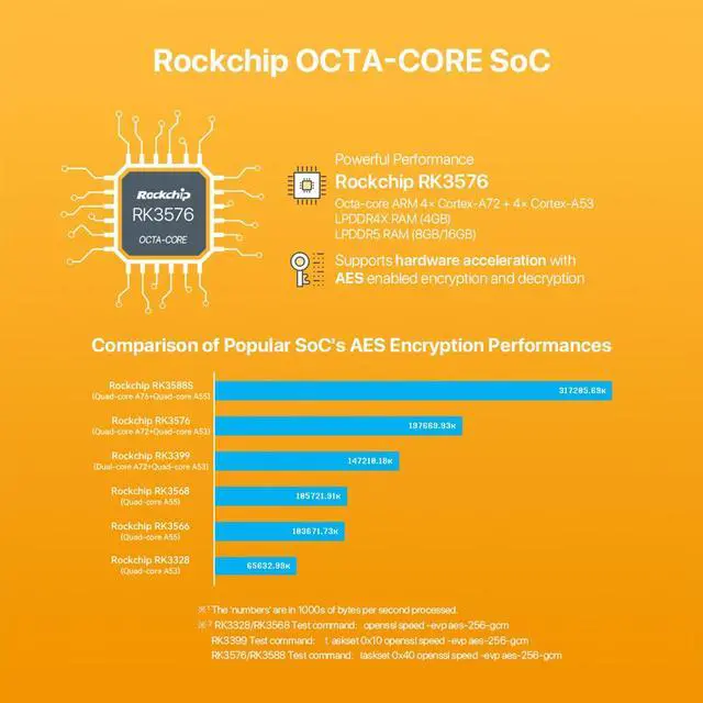 [Wireless Mobile Mini Travel Router] The NanoPi M5 mini router is an open-sourced mini smart gateway device, designed and developed by FriendlyElec. It is based on Rockchip RK3576 SoC, with 32-bits LPDDR4X/LPDDR5 RAM and UFS 2.0 storage(optional). The RK3576 is an 8-core 64-bit processor featuring a powerful architecture with 4x ARM Cortex-A72 cores and 4x ARM Cortex-A53 cores. It is equipped with an ARM Mali G52 MC3 GPU and 6 TOPS NPU.