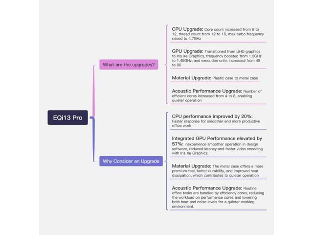 Expandable Memory and StorageThis EQI built-in 32GB DDR4 RAM/500GB M.2 NVME SSD..And you can expand the storage with M.2 NVME 2280 SSD(2slots) upgrade to 4TB each. Offers an excellent performance and smooth operation when you do heavy loading work.