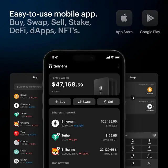 JUST TAP IT: Simply tap the card on your mobile device and install the Tangem application to buy, sell, transfer cryptocurrency and use dApps safely and securely using an NFC connection. Buy crypto with Google/Apple pay and credit/debit cards. Sell crypto back into fiat and enjoy your full circle journey. Tangem hardware crypto wallet fully integrated