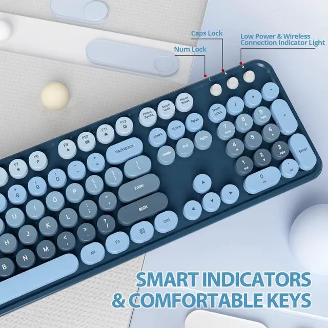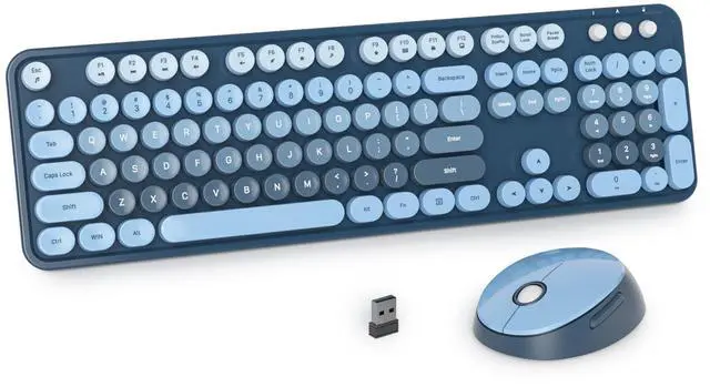 Ussixchare Blue Wireless Keyboard and Mouse, Cute Keyboard and Mouse Combo, Full Size Typewriter Keyboards with Number Pad, Colorful Key Board for Pc Laptop