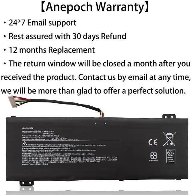 Anepoch AP21D8M Laptop battery Replacement for Acer Nitro 5 AN515-46 AN515-47 AN515-58 AN515-58-56CL AN515-58-766R AN515-58-72QR, Nitro V 15 ANV15-51, Nitro 16 AN16-51 AN16-51-74BV 15.4V 57.48W h 3733mAh