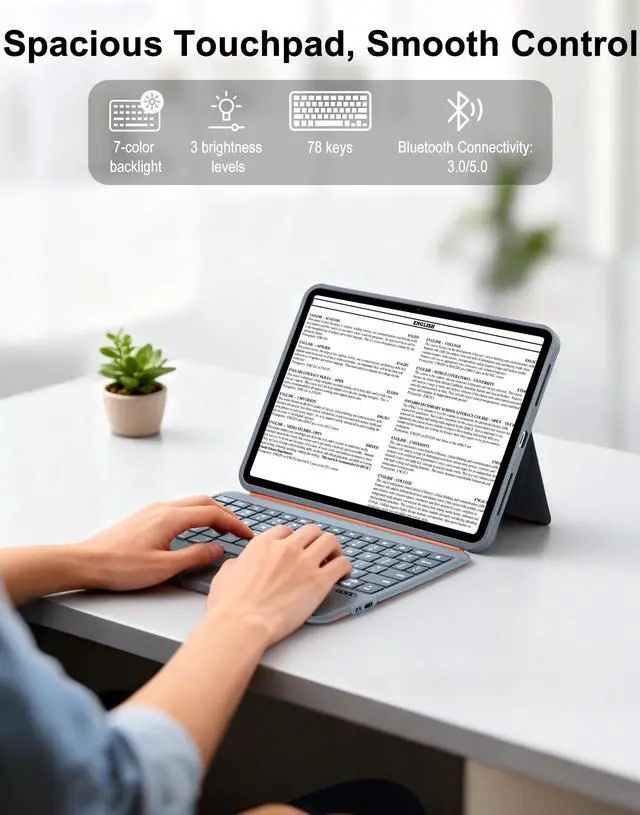Precision Touchpad: The light and thin ipad case with keyboard enjoy seamless navigation with multi-touch gesture support and a highly responsive touchpad. Effortlessly browse, edit, and control your iPad with enhanced accuracy and no lagideal for both work and entertainment.