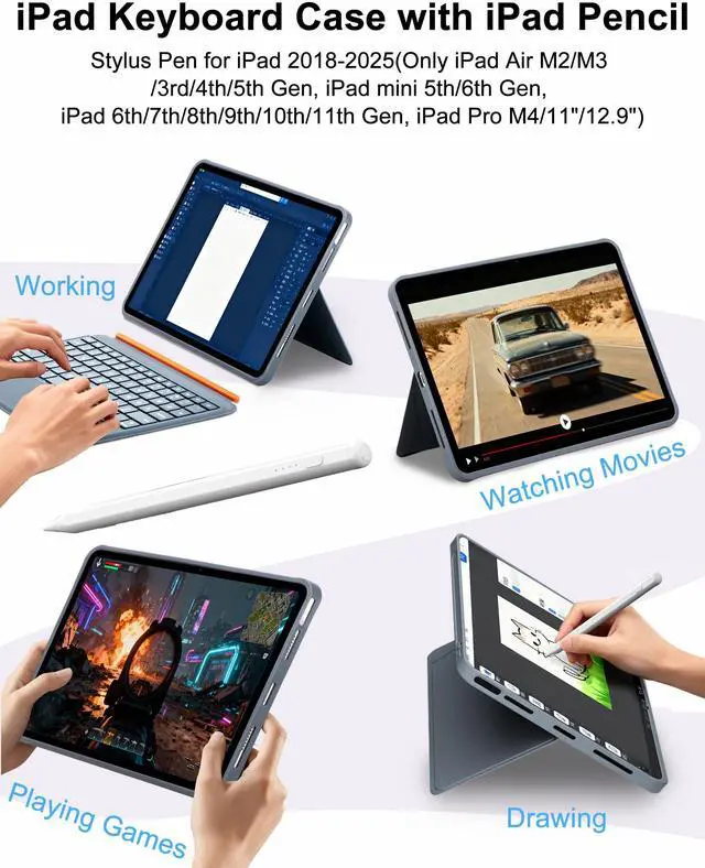 Compatibility: Designed for a wide range of iPad models including: iPad 11th Gen (2025) A16 (A3354, A3355, A3356), iPad 10th Gen (2022) A14 10.9" (A2696, A2757, A2777, A3162), 2025 M3 iPad Air 11" (A3266, A3267, A3270), 2024 M2 iPad Air 11" (A2902, A2903, A2904), 2022 iPad Air 5th Gen 10.9" (A2598, A2589, A2591), 2020 iPad Air 4th Gen 10.9" (A2316, A2324, A2325, A2072), 2019 iPad Air 3rd Gen 10.5" (A2152, A2123, A2153, A2154, A2176),