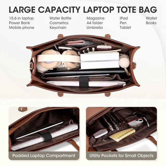 Large Capacity & Multiple Compartments: This laptop tote bag is designed with 1 main padded compartment for your computer, ensuring comprehensive protection. It also includes a dedicated tablet compartment, 2 elastic side pockets, 1 large zippered pocket, 1 slip pocket, and 4 pen slots. The rear concealed zippered pocket securely stores important documents. This work tote bag combines safety with ease of use, making it an excellent long-term partner for work, shopping, dating, and college. ^^ Perfect Size of