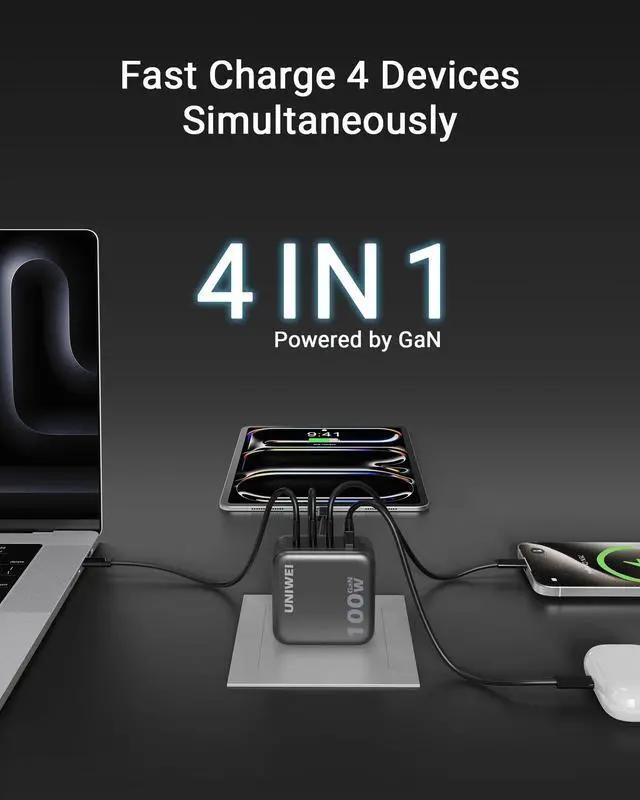 ^^ What You Get: UNIWEI Kuafu Charger (100W, 4Ports, GaN), welcome guide, our worry-free 12-month warranty, and friendly customer service.
