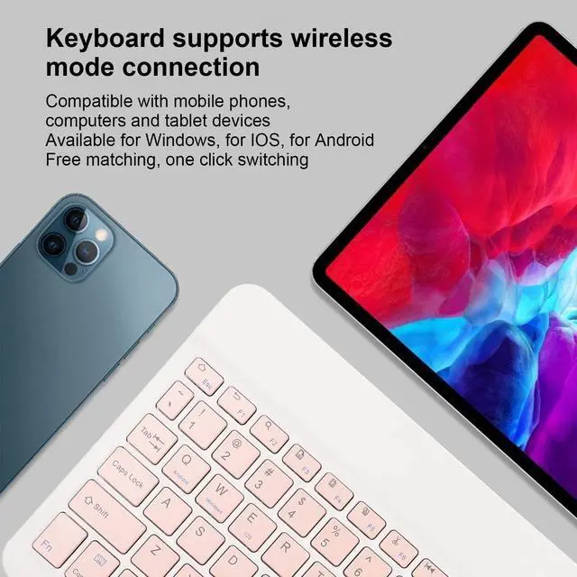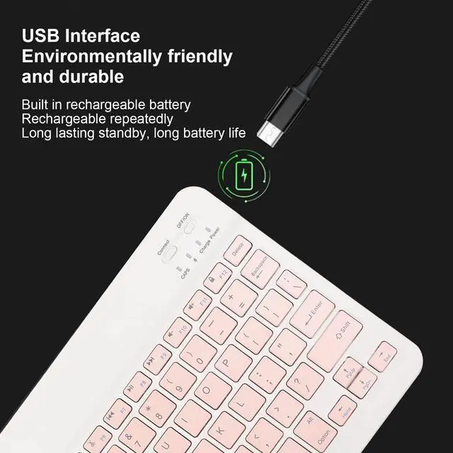 [Composite Keys] Keyboard has 12 Fn composite keys, the combination keys of Fn+F1~F12, and the commonly used shortcut key functions such as volume, media, mute, and song cutting, which are efficient for office work. ^^ [Compatible] keyboard supports BT mode connection, and is compatible with mobile phones, computers, and tablet devices, for for IOS, for Android, matching, one key switching. ^^ [USB Charging] Data cable of the BT keyboard is a USB interface, with a built in rechargeable battery, which can be recharged repeatedly, environmentally friendly, with long lasting battery life.