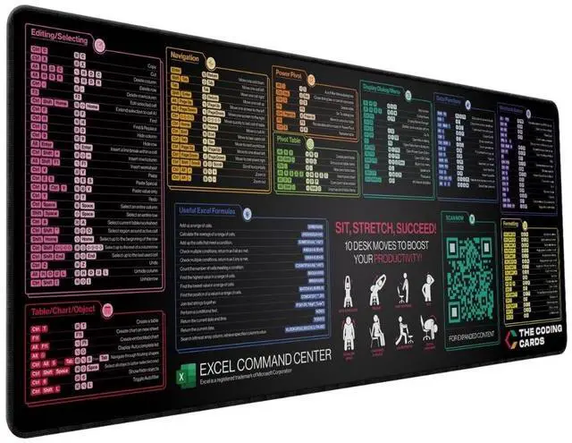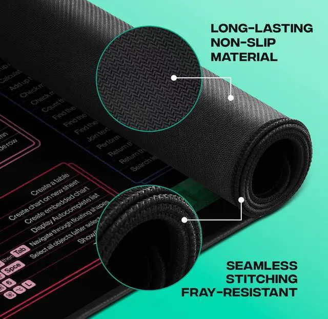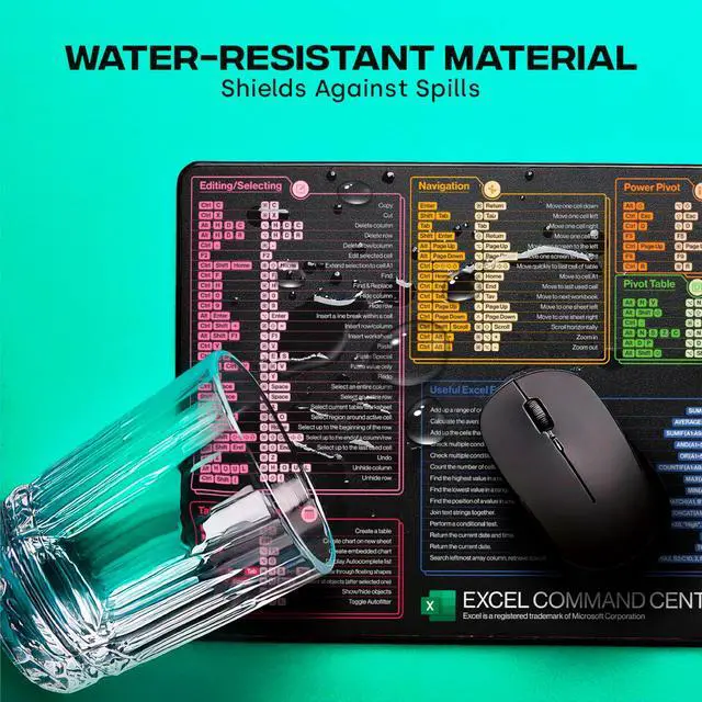 Comprehensive Cheat Sheet This mouse pad features an extensive collection of Excel shortcuts for both Mac and Windows users. Optimize your productivity with this Excel shortcut mouse pad, designed to help you work smarter, not harder. Featuring a complete list of essential Excel commands for both Mac and Windows users, this desk mat allows you to quickly refer to shortcuts without navigating menus or memorizing long key combinations. Whether you're working with spreadsheets, financial reports, or data analysis, this cheat sheet puts all the key commands at your fingertips. ^^ Water-Resistant Surface Accidental spills are no longer a problem.