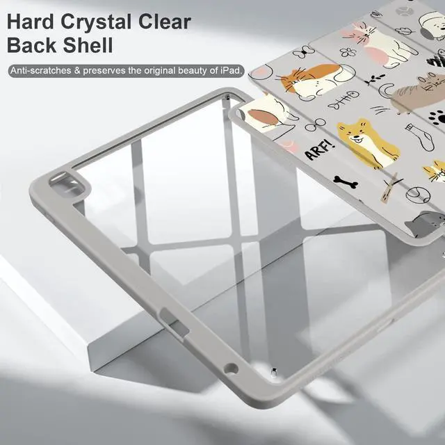 Note: The apple pencil is not includedQ2. Will the clear back be yellow over time? A2. No, the back shell is made of hard PC material, it wont turn yellow, and you can clearly see the back of your iPad even you use it for a long time. Q3. Does the clear back scratch easily? A3. No, the clear back is made of anti-scratch hard PC material, so its not easy to scratch. Q4. Does the pattern printed leather case have a smell? A4. The ink is made of eco-friendly materials. Due to being stored in a sealed bag, there may be a slight odor initially. However, leaving the case in a well-ventilated area for 24 hours will dissipate the odor.