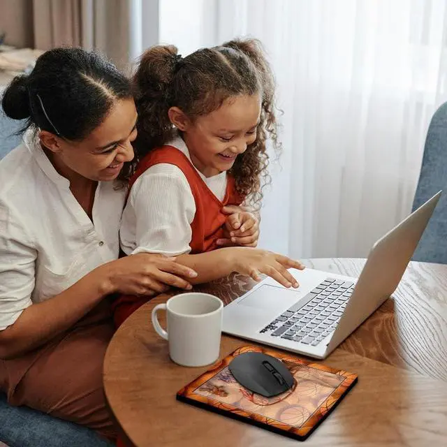 Girl Playing Basketball Mouse Pad is 8" x 8" x. 25" and is made of heavy-duty recycled rubber. Matte finish image will not fade or peel. Machine washable using a mild detergent and air dry.
