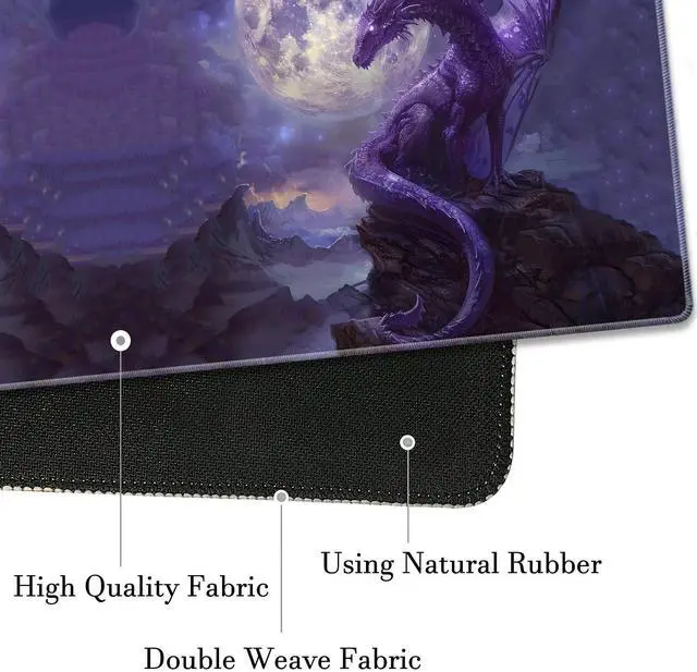 Extended Gaming Mouse Pad 31.5" x 11.8", with Edge Stitching, Non-Slip Rubber Base Keyboard Pad, Suitable for Work, Game, Office, Home and Coasters, Starry Purple Dragon