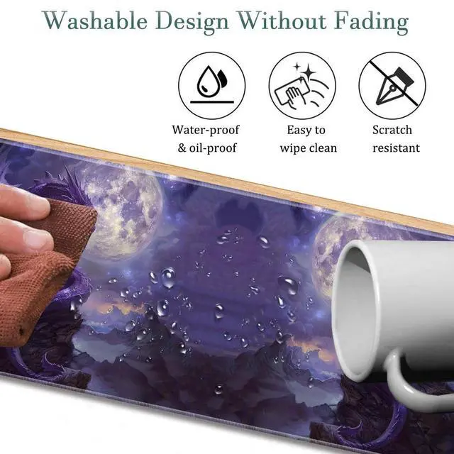 • Perfect SizeLarge-sized desktop mouse pad measures 800 x 300 x 2.5 millimeters (31.5 x 11.8 x 0.1 inches), which can perfectly fit your desktop and is highly suitable for gaming, work, and study purposes.