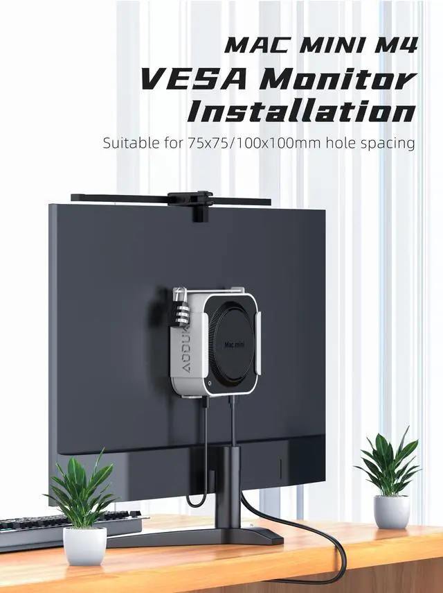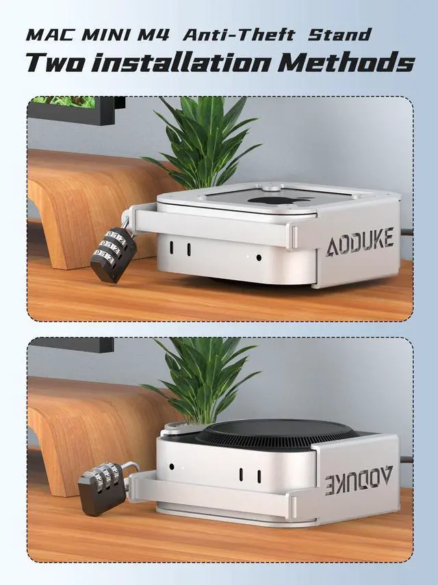 Product Features: This with Combination Security lock 2024 Mac Mini stand is crafted from full aluminum alloy and supports installation on plaster walls, wooden table boards, and VESA monitors. ^^