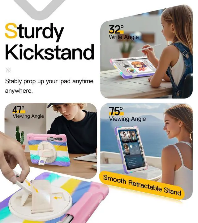 Adjustable & Detachable Carrying Strap: The Samsung Tab S10 lite/S10 FE/S9 FE 10.9" &S9/S8/S7 11 inch 5G tablet case features a portable shoulder strap with adjustable length to fit adults or children. It securely supports the tablet in both landscape and portrait modes during outdoor work or travel, freeing your hands. It can also be hung in any location, such as the kitchen or bedroom. The rear seat hanging design allows children to easily view entertainment content.