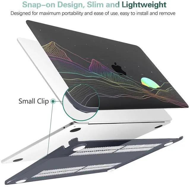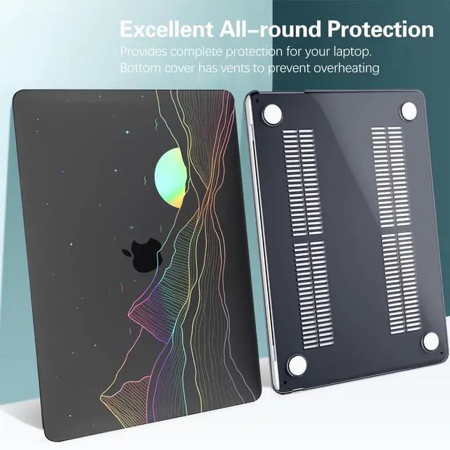 KEROM Clear Black Case with Patterned Design, tailor-made for your MacBook Pro 13 inch from 2016 to 2022 (Models: M2 M1 A2338/A2289/A2251/A2159/A1989/A1706). Designed with an ultra-thin plastic hard shell case with a silicone keyboard protector, it provides complete protection for your valuable laptop. Designed with the unique ultra-crystal feature, this case allows you to showcase the original sleek and modern aesthetic of your MacBook Pro while keeping it safe. Whether you're working or playing, the KEROM case is the perfect companion for your MacBook Pro 13.3 ''. In addition to its stylish appearance, this case is highly durable and scratch-resistant. Made from high-quality plastic, it is precision-engineered to resist bumps, scratches, and fingerprint smudges encountered during daily use, ensuring your MacBook Pro stays looking as good as new. The KEROM team pays great attention to detail, ensuring every corner and opening is meticulously designed for a perfect fit. This design does not interfere with the daily use of the ports or the opening and closing of the device. Whether you prioritize simplicity or practicality, this KEROM MacBook Pro 13 inch cover case will meet your needs. It protects your MacBook Pro from accidental damage while allowing your personality and taste to shine through.