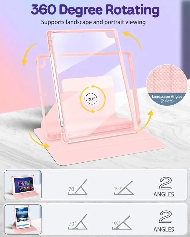 ^^ 360 Rotating Stand: This for iPad 5th/6th gen case, case for iPad air 1st/2nd gen, for iPad Pro 9.7" case with an functional rotating stand design, supporting your devices to switch between landscape and portrait orientations for all-around viewing and use.