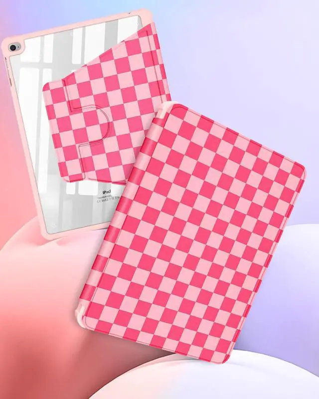 Kidcube for iPad 5th/6th Generation Case, for iPad Air 1st/2nd Gen, for iPad Pro 9.7 Inch Case for Women Girls Kids Cute Folio Cover with Pencil Holder Plaid Design Rotating Stand Teen Cases 2018/2017