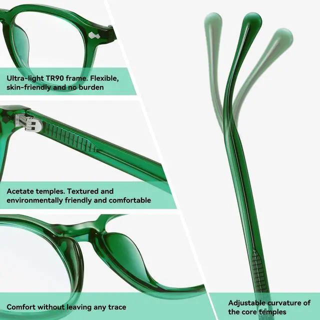 ^^ SUPERIOR QUALITY: Features high-grade TR90 frames that are exceptionally flexible, durable, and skin-friendly. The lightweight design ensures comfortable, burden-free wear. acetate temples offer a rich texture, and provide unmatched comfort. The metal pins are embedded in the temples, and the curvature of the temples can be adjusted at will.