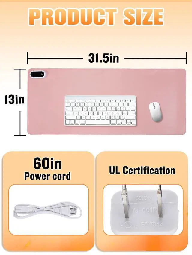 5-Level Intelligent Temperature Control: This pink heated mouse pad offers 5 temperature settings: 86 (30), 95 (35), 104 (40), 113 (45), and 122 (50). Adjust the heat to your personal preference and keep your hands warm and comfortable. The 31.5" x 13" size provides ample space for both keyboard and mouse, ensuring a smooth and comfortable gaming and office experience