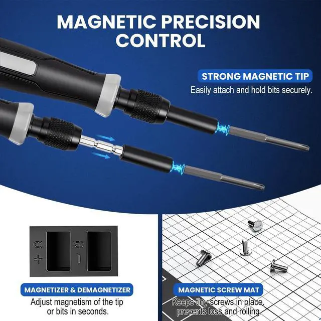 All bits are made from premium CR-V steel for superior hardness, wear resistance, and durabilityideal for any magnetic screwdriver set used in phone repairs, laptop repairs, and DIY electronics work. ^^ Multi-Functional Accessories for Versatile Repair Tasks The kit includes a flexible extension shaft for multi-angle operation in tight spaces, a magnetizer/demagnetizer for adjusting bit magnetism, a magnetic screw mat, a 1/44mm adapter (compatible with household electric screwdrivers), and opening tools like a double-ended pry bar, triangular pick, and suction cup. Perfect as a phone repair kit, tablet repair kit, or PC repair tool kit.