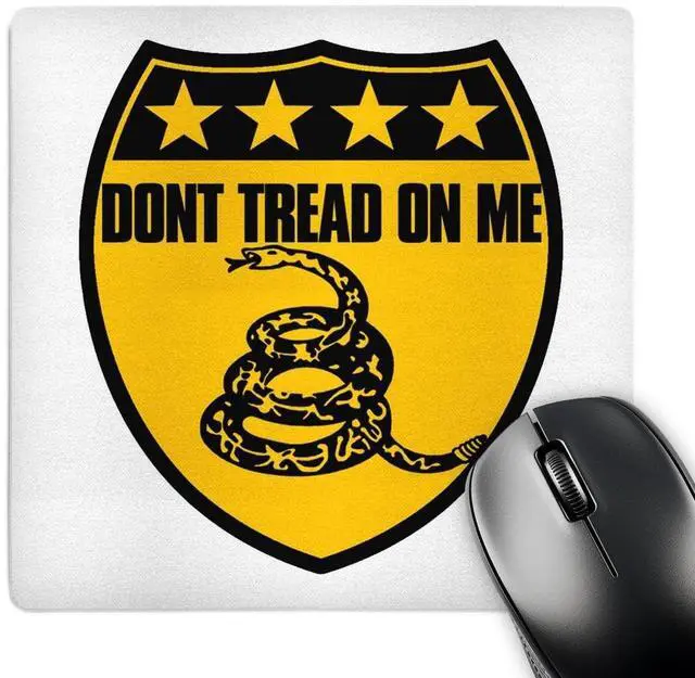 Don't tread on me. Mouse Pad is 8" x 8" x. 25" and is made of heavy-duty recycled rubber. Matte finish image will not fade or peel. Machine washable using a mild detergent and air dry.