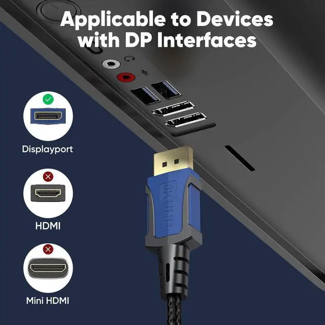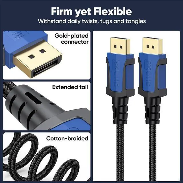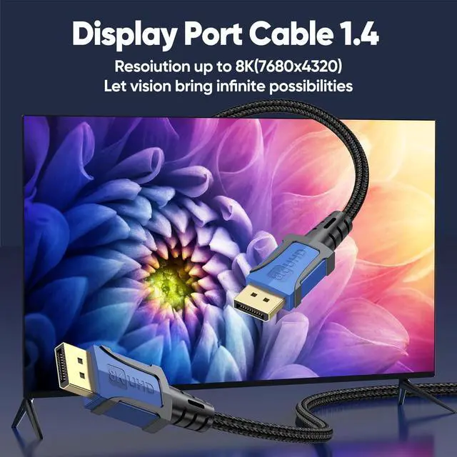 High Resolutions: The displayport cable supports 8K (7680x4320) @60Hz, 5K (5120x2880) @60Hz, 4K@144Hz, 2K@240Hz, 1080P@240Hz, backwards compatible with displayport 1.3, 1.2, 1.2 a, 1.1 and 1.0. Make your device present a lifelike world ^^