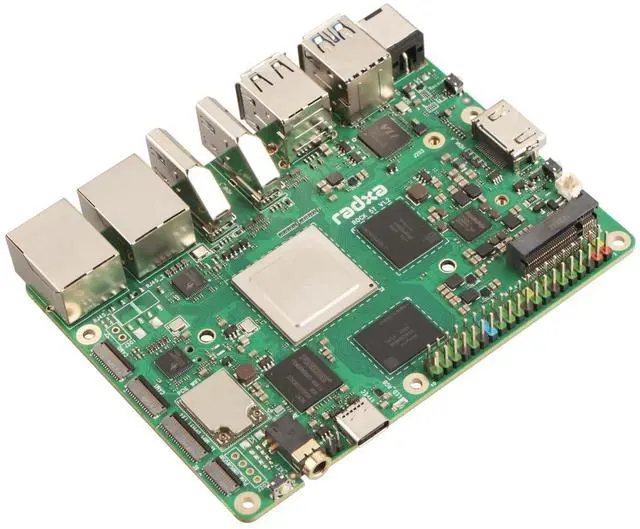 Experience powerful computing capabilities with the Radxa ROCK 5T single board computer, featuring the advanced RK3588 8-core CPU and cutting-edge LPDDR5 RAM. This versatile board delivers impressive performance with its 6 TOPs NPU and supports stunning 8K HDMI output for crystal-clear visual experiences. The dual M. 2 M Key connectors provide excellent expansion possibilities, while the Penta SATA Hat add-on enables extensive storage options with up to 100TB capacity. Measuring just 3.5 x 3.5 x 0.5 inches, this compact powerhouse is compatible with Raspberry Pi 5, making it perfect for both enthusiasts and professionals.