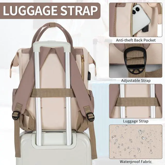 • Anti-theft Design and Convenient Luggage Strap for Laptop Backpack: This backpack features a dedicated luggage strap on the back that securely clips onto your luggage handle, keeping your hands free while traveling, making travel more convenie