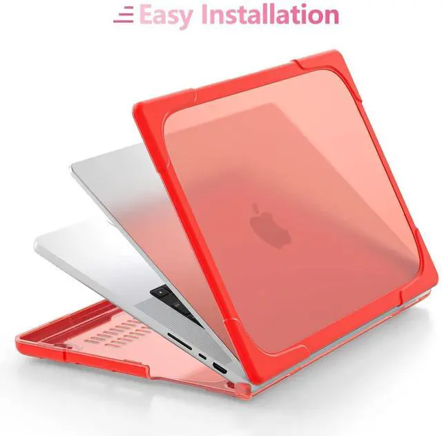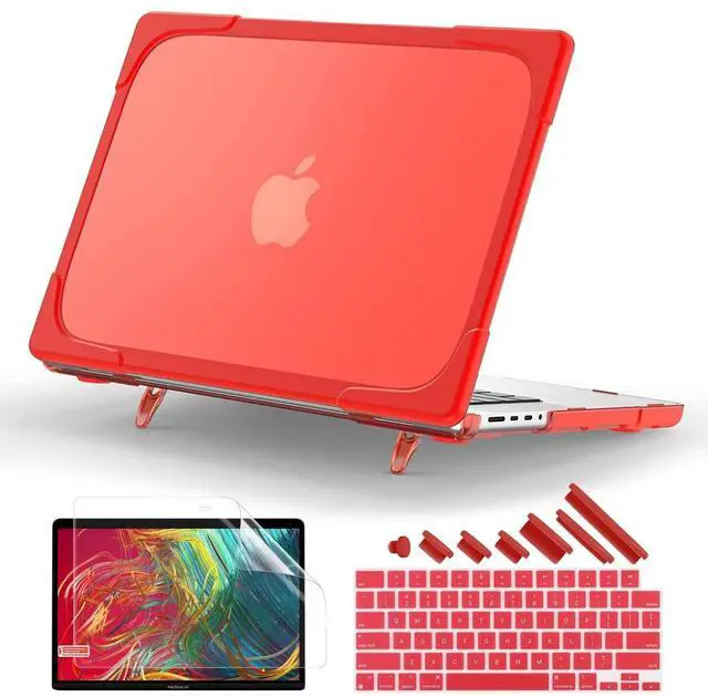 Model Number: A3434/A3112/A3401/A3185/A2918/A2992/A2779/A2442. Does not fit other MacBook models. ^^ The built-in foldable kickstands provide an ergonomic typing angle, also give you a better visual experience. Fully vented for safe heat disbursement; Easy access to all ports and features, you can plug your charger, cable or headset without removing the case ^^ Engineered shock-absorbent beveled ridges design TPU bumper heavy duty hard shell, it can absorb the impact of accidental drops and bumps, minimizing the risk of damage to your laptop, provides full protection for your laptop against accidental scuffs, drops, and scratches, keeping your MacBook Pro looking new and sleek ^^