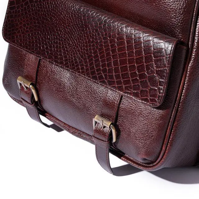 bonahide Genuine Leather Luxury Backpack Multi-functional Elegant Daypack Office Travel Leisure 15.6" Laptop Bag (Burgundy)