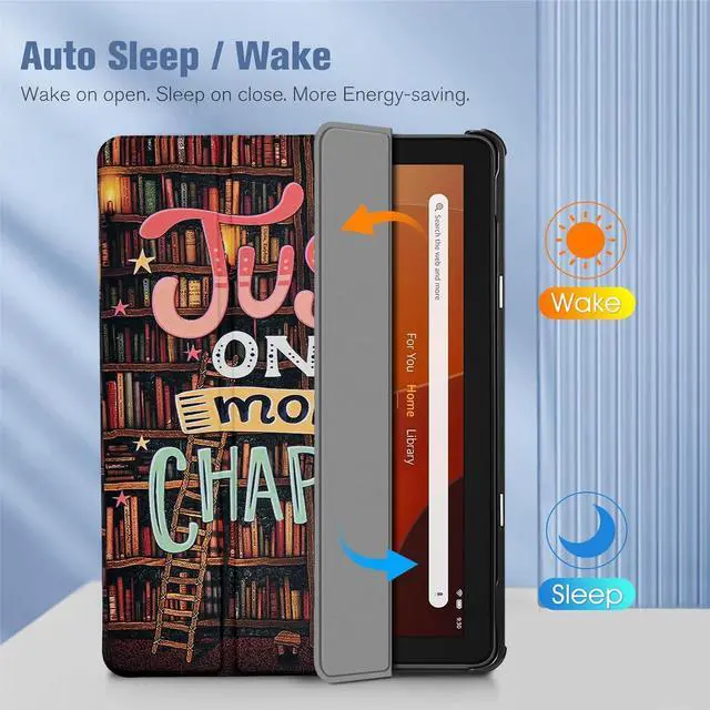 PLEASE NOTE: This case is designed for Fire HD 10 Tablet 13th generation 2023 release. Protect your new Kindle with this Case at all times! The Case sports a simple and classy design. The back shell is made from durable polycarbonate material so you do not need to worry about any damages. It offers an easy clip-on application. Because the cover is uniquely designed to flip back and transform the case into a comfortable viewing stand that offers two different viewing angles, this capability allows the viewer to use the new Kindle hands-free whatever your position may be without strain whether it is being used for viewing or for a keypad. All features of Kindle are accessible even with the case on. It even includes a camera hole so you can take pictures and videos without removing it. Watch movies and listen to music clearly with speaker holes! Unique Design for Just One More Chapter Book Reading Lover Bookworm