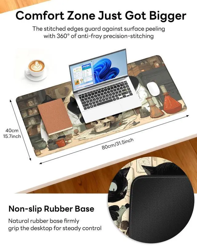 Spacious Neoprene Desk Mat: This giant mouse pad is made of 3mm thick natural rubber that cushions your wrists during long sessions. Built to last with anti-fray stitching that resists peeling, bubbling, and wear ^^