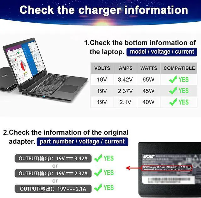This is a new compatible replacement AC Adapter Charger Power Supply for Acer Aspire E1-531-4665 E1-531-4667 E1-531-4694; Acer Aspire E1-532 E1-532-2616 E1-532-2635; Acer Aspire E1-532-4629 E1-532-4646 E1-571-6402. Includes Power Supply Cord.