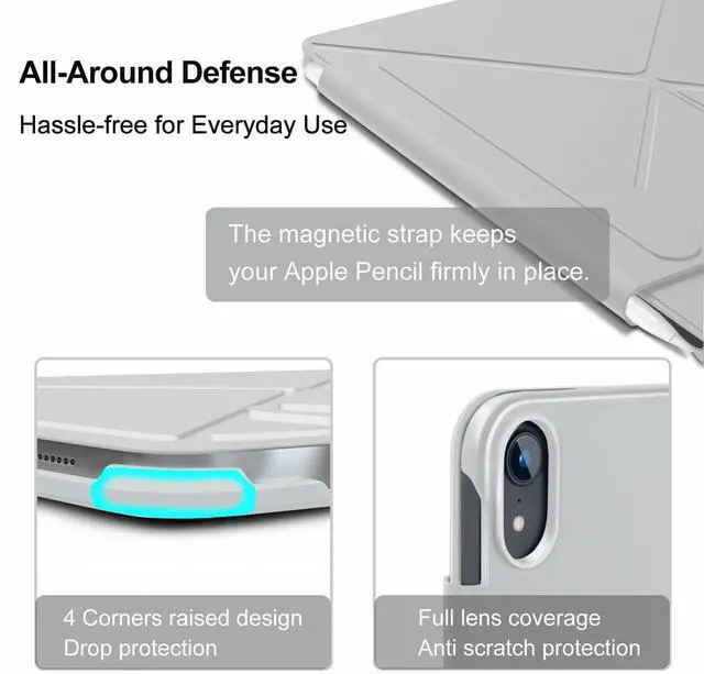 [ Strong Magnetic Design ] The Powerful magnets hold your tablet firmly. Design of Four Corner Anti slip Protector, protect your iPad carefully. while staying safe for daily use without falling off
