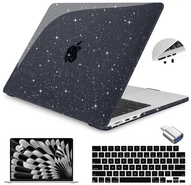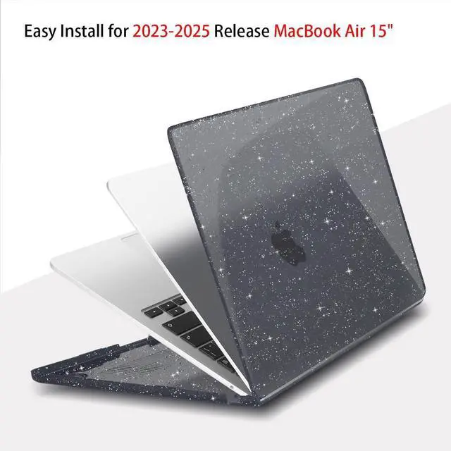 Glitter CASE FOR MACBOOK Air 15 INCH - Only Compatible with MacBook Air 15 inch 2023 2024 2025 Release with Liquid Retina Display & Touch ID, Model: A2941 M2/A3113 M3/A3241 M4. ^^ [PRECISE CUT OUT DESIGN FOR 15 INCH MACBOOK Air]-Easy access to all ports and features, you can plug your charger, cable or headset without removing the case. ^^ EASY INSTALLATION AND PERFECT FIT- two-piece snap on design for easy installation and removal. Allows your Air 15 inch to open more than 90 degrees and precise cutouts allow full access to all functions, fontrols, and Buttons. Plug your charger, cable, or headset without removing the case. ^^ DURABLE MATERIAL- Air 15" Case is made of high-quality plastic materials, replacing your computer to withstand everyday fingerprints, scrapes, and scratches. ^^ 5IN1 BUNDLE - Including 1 Air 15" Case (including top and bottom cover), 1 matching Keyboard Cover, 1 Screen Protector 1 Dust Plug, 1 USB Adapter. Give your computer full protection. Teryeefi offers 1 year warranty for case and keyboard cover.