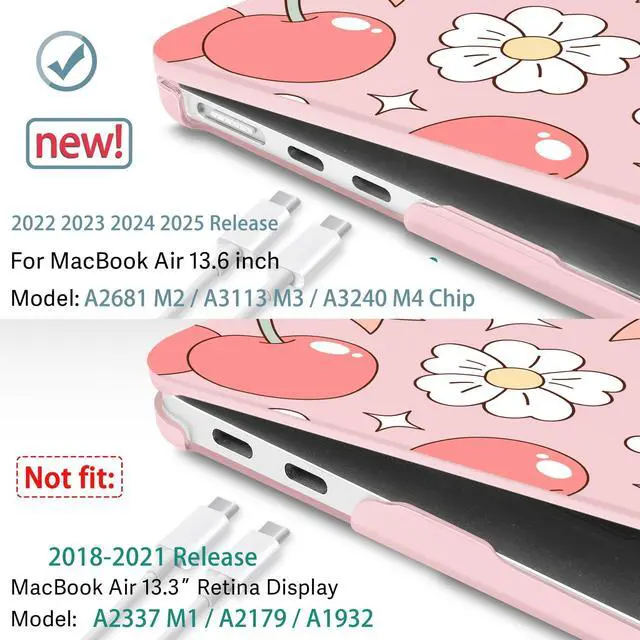 Compatible with: For MacBook Air 13.6 inch Model A2681 Apple M2 Chip with Liquid Retina display and Touch ID ( 2022 2023 Release ) For MacBook Air 13.6 inch Model A3113 Apple M3 Chip with Liquid Retina display and Touch ID ( 2024 Release ) For MacBook Air 13.6 inch Model A3114 Apple M4 Chip with Liquid Retina display and Touch ID ( 2025 Release ) Case Note
