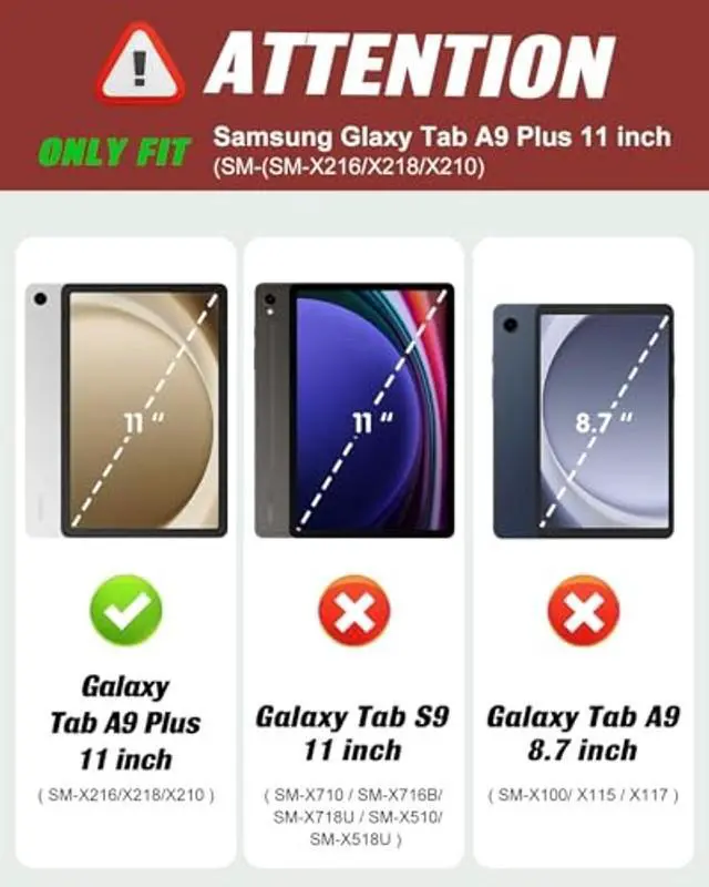 A9+ 2023 11inch ((Model: SM-X210/X216/X218), make your tab A9+ 5g case can stand at 4 different positions on the table. Provide you comfortable viewing and typing experiences. ^^ Our cases for Samsung galaxy tab a9 plus 11" 2023 are made of premium durable PU leather and soft TPU, offer a good protection from drop and shock. It is stain resistant, and easy to clean. The high-definition printing process makes clear pattern and it not fade easily. ^^ This for Samsung Tab A9 plus case with pencil holder on the inside, and magnetic pen slot also retained on the back. So you can place and remove your pencil easily. It can prevent you from losing or breaking your pencil while walking or outdoors. ^^ Built-in magnetic strip, this for galaxy tab A9 plus case with the smart function of auto sleep and auto wake, no wasting the power energy and extend your for Tab A9 Plus standby time. ^^ This for Samsung Galaxy Tab A9+ tablet 11" folio case with cute cool pattern, making it look more stylish. It is also a good design for boys, girls, kids, women.