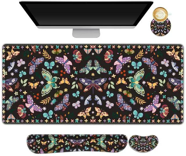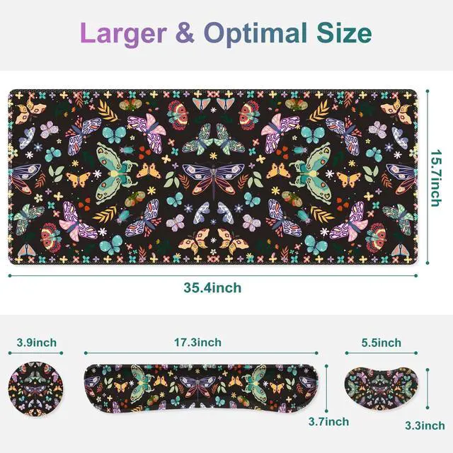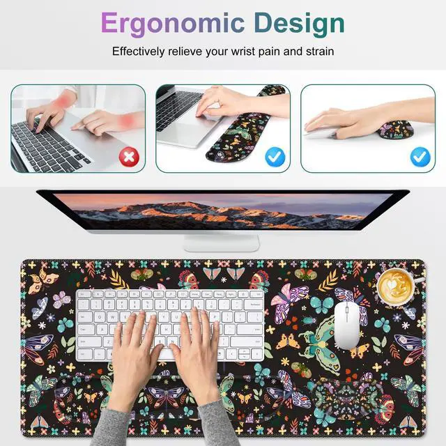 You deserve to have our comfortable typing relief mouse pad set 35.415. 7 IN Desk Mat + Keyboard Wrist Support + Mouse Wrist Rest + Coaster for DrinkMore unique pattern design desk pad set available for choice. A different mouse pad Will add some artistic personality to your life, unique style colors desk mat set will be a chic office desk decor and a good desk organizer, bring you a good mood, and increase work&study efficiency. This office desk accessories will be a wonderful gift for friends, family, classmates, and colleagueFeatures Wrist rest for computer keyboard and mouse with ergonomic design, filled with breathable memory foam materials, plays a role in minimizing discomfort and soreness from work and study.