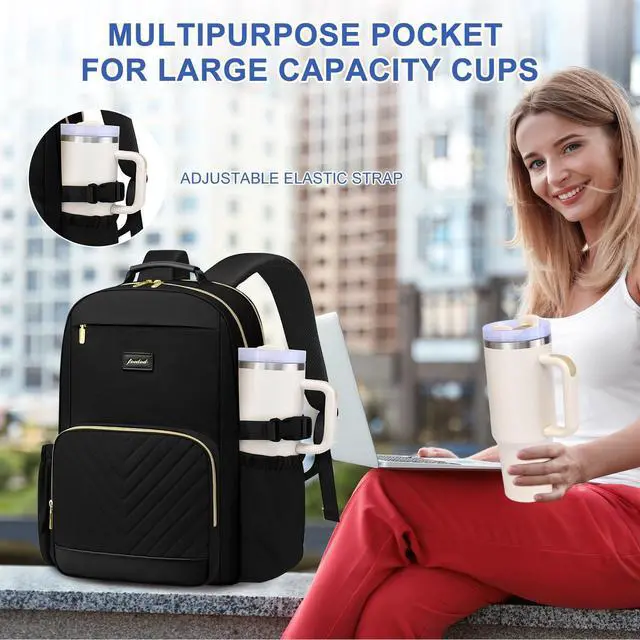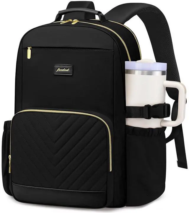 Weight: 2.25 lb ^^ Large Capacity Cup DesignAdjustable elastic strap, designed for convenience, custom-designed for large capacity cups. With this water bottle pouch, you can easily carry your cup. Free your hands and take your water bottle accessories anywhere with ease. Well designed travel backpack purse for women ^^ Personal Item Travel BackpackThe work backpacks for traveling on airplane, fits great under the seat on the plane. The adjustable and mesh airflow well-padded shoulder straps are nice and cushioned so they dont hurt your shoulders. The anti-theft pocket on the back design and waterproof material give you peace of mind while traveling. The luggage strap design on the back that allows it to ship over your suitcase handle for an easy push through the airport ^^ Student Backpack with USB Charging PortWomens laptop backpack have an external USB charging port and set-in charging cable that can be easily connected wherever you are. It is more convenient and comfortable for you. (POWER BANK IS NOT INCLUDED) Womens laptop backpack is the best choice for you ^^ Padded Work Bags College BackpackThe dedicated separate laptop compartment with cushioned cotton sewn around, has a dedicated separate 18-inch laptop pocket, a 9.7 -inch iPad slot, fits your laptop perfectly and is padded for extra protection.