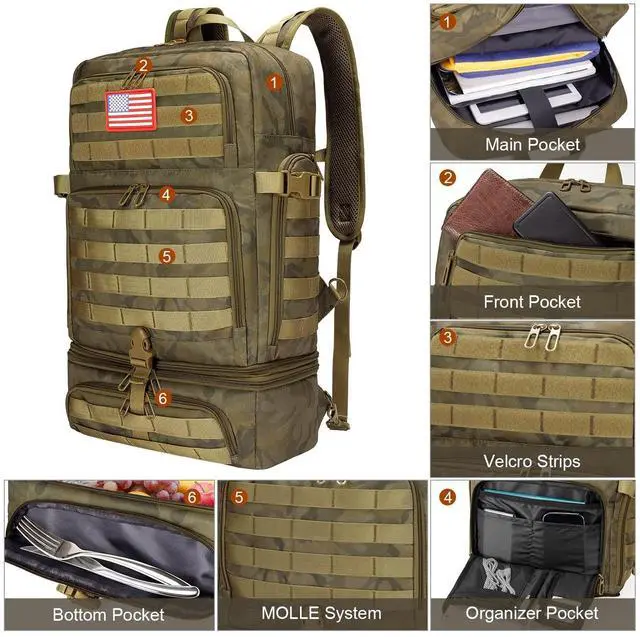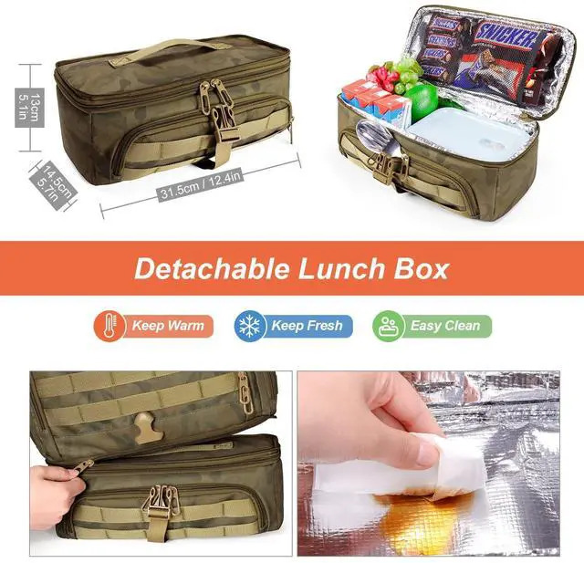 ^^ MULTI-PURPOSE USE: (backpack & lunch bag) and Molle design allow you to use it for almost any situation from laptop backpack, work backpack, travel backpack, weekender backpack, tactical backpack or casual daypack. Perfect for work, college, picnic, bussiness trip, everyday carry, camping, travel, flight, etc. This item is not intended for use by children 12 and under.