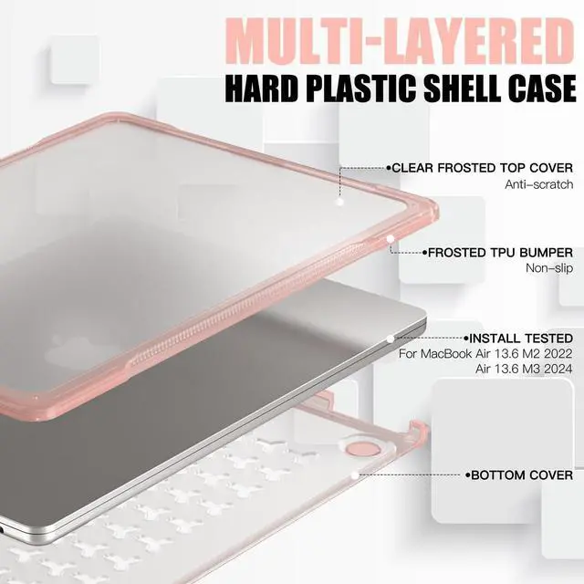 ^^ The case is made of high-quality, scratch-resistant and durable material that keeps your MacBook Air 13 inch safe from scratches, dust, and fingerprints. The carbon fiber edge design provides a modern and sleek look to your device while offering excellent protection against impact. ^^ The Batianda MacBook Air 13 inch Case features Multiple Y-shaped ventilation holes breathable bottom design that promotes air circulation and prevents overheating, ensuring that your device remains cool even during prolonged use. The four anti-slip feet at the bottom of the case provide stability and prevent your MacBook Air from sliding on smooth surfaces.