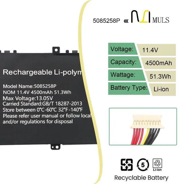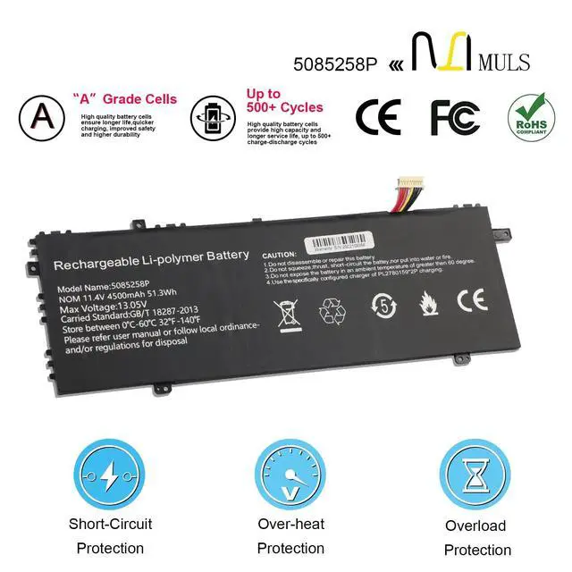 Voltage: 11.4V. 100% brand new. Up to 500 recharge cycles over the life of the battery. High-quality materials and circuit board. ^^ Replacement For LaptopFit for Gwtc71427-Bk Notebook. ^^ Compatible with Part NumberFit for 5085258P. ^^ Safety Above AllOur batteries are certified by CE, FCC and RoHS to ensure your safety, and packed with prevention measures like short circuit, overheat and overcharge protection. Our laptop batteries are made with premium materials and circuit boards to ensure performance and durability. ^^ Give Customers the