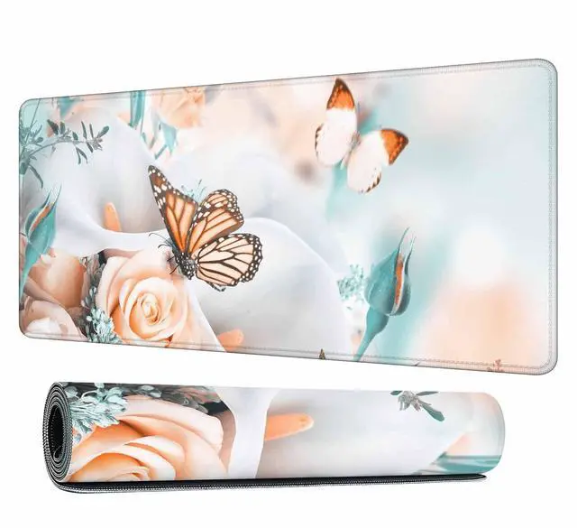 Y YIHANGBEST Butterfly Mouse Pad Keyboard Mat Yellow Roses and White Calla Lilies Large Gaming Mousepad for Desk,Computer,Office 35.4"X15.7"