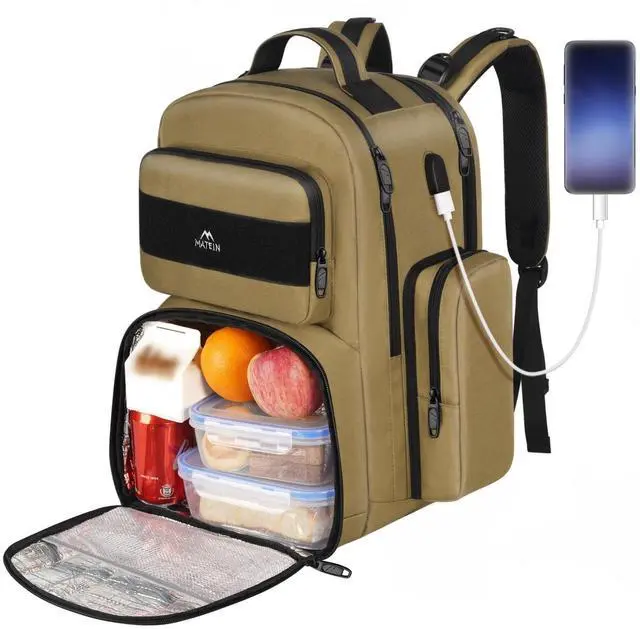 Insulated Lunch Box Compartment: Matein 15.6 inch lunch backpack for men not only keeps the food warm but also keeps cold drinks for about 2-4 hours, high quality insulation layer of lunch box compartment keeps food fresh and warm in this insulated cooler backpack, which makes it easy to clean and store food. Laptop backpack with cooler compartment is suitable for work, college, office, picnic, beach, trip, travel, outdoor&indoor.
