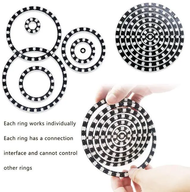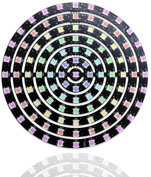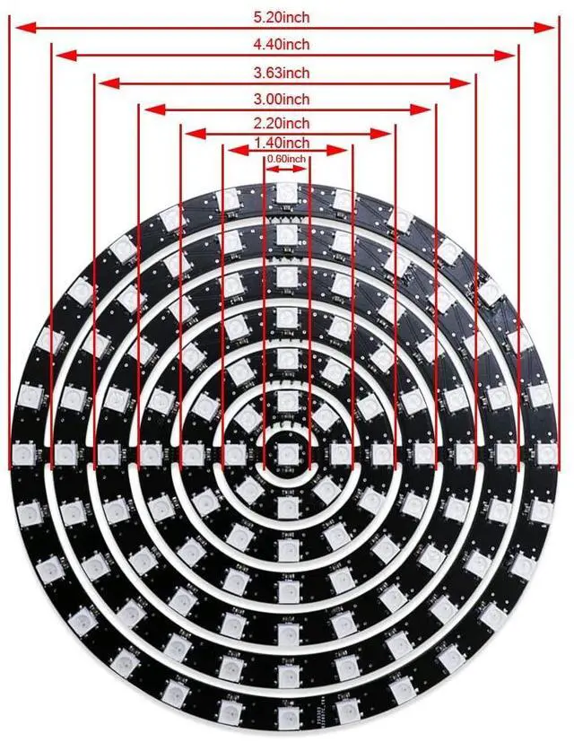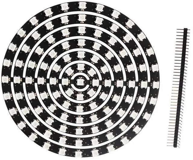 Waterproof grade: not waterproof7. Size132*132mm 5.2 * 5.2 inPackage includes: 1*109 LED 7-ring WS2812B 5050 RGB LED1*pin header40pin