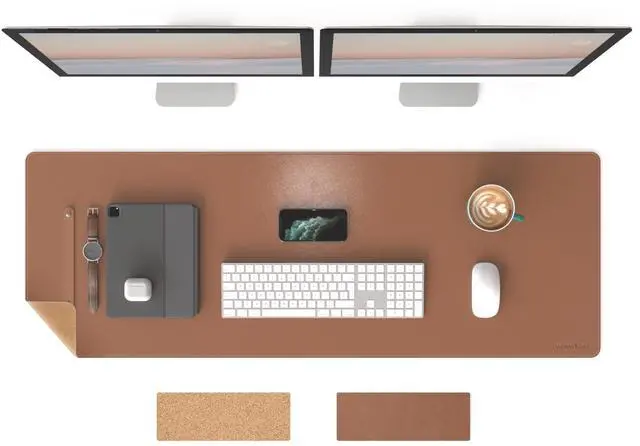 DUAL-SIDED PAD: Made with natural cork and vegan leather, this large desk pad adapts to any occasion, The 0.08 -inch thickness cushions your wrists during gaming or office work ^^