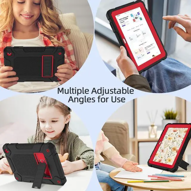 MENZO All-New Case for 8" Tablet (12th/10th Gen 2024/2022 Release), Slim Shockproof Rugged High Impact Protective Case with Kickstand, Black+Red